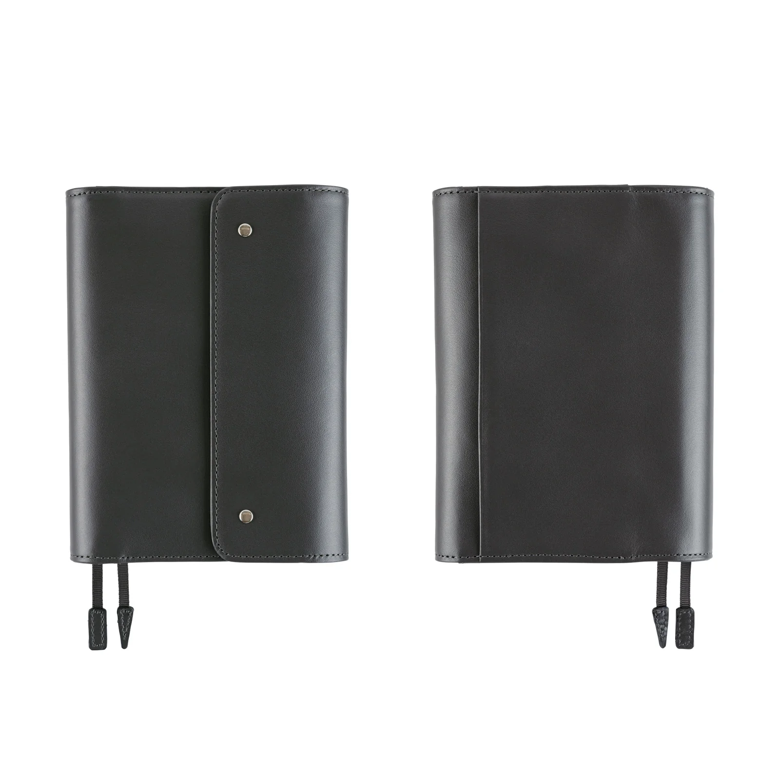 A6 Tri-fold style Leather Cover in Charcoal Gray for Hobonichi A6 Original Book Planner. Made of high quality charcoal gray leather which wraps around your planner nicely with two small snap button closures.